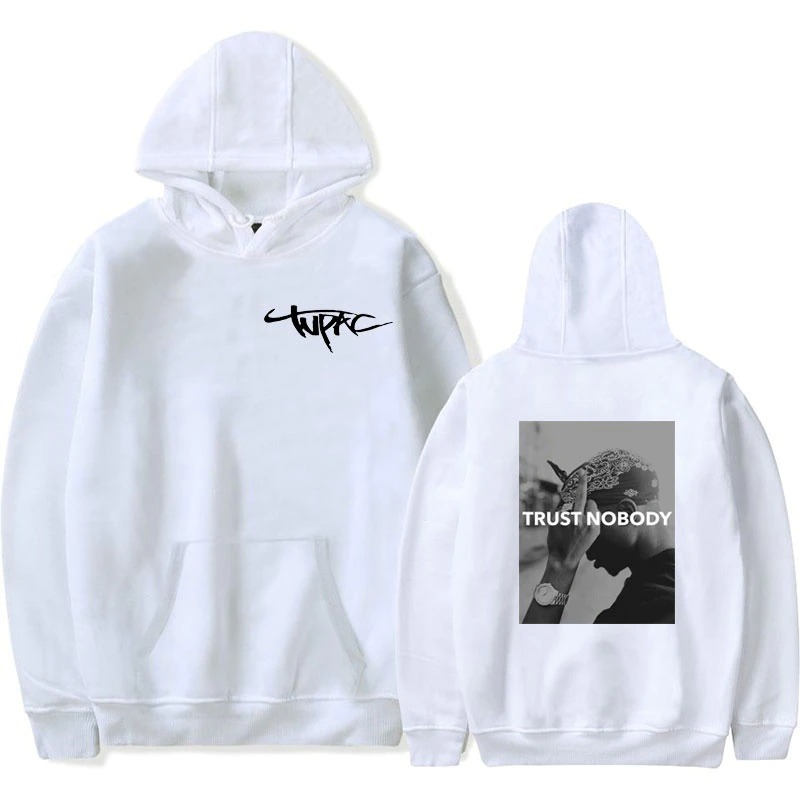 Pohodlná a stylová unisex mikina s motivem Tupac "Trust Nobody". Mikina má kapuci a je vyrobena z kvalitního polyesteru. Nabízíme ji v mnoha barvách a velikostech. Tabulku velikostí naleznete níže, pro lepší fit vybírejte větší velikost. Pro pomoc s měřením použijte obrázek níže.