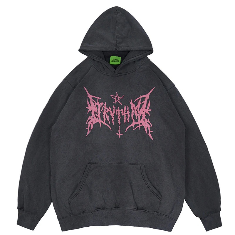 Stylová unisex vintage mikina s kapucí vyrobená z kvalitní bavlny a polyesteru; oversized fit. Nabízíme ji ve dvou provedeních: s bílým a růžovým nápisem. Tabulku velikostí na základě výšky a váhy naleznete níže; pro lepší fit vybírejte vždy větší velikost.