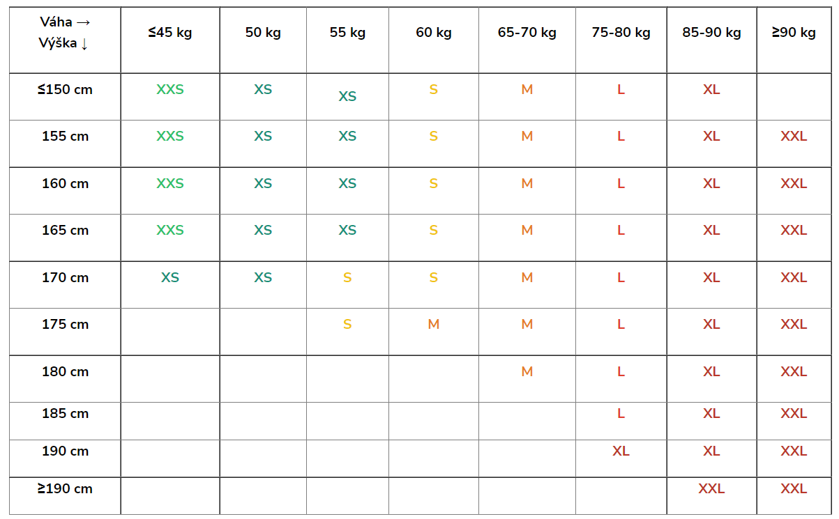 Doporučené velikosti: