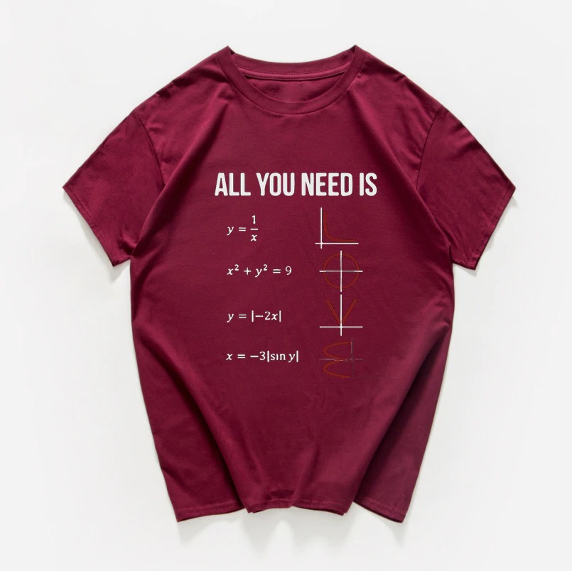 Pohodlné unisex matematické tričko s grafy funkcí ve tvaru slova "Love". Tričko má krátký rukáv a je vyrobeno z kvalitní bavlny. Nabízíme ho v mnoha barvách a velikostech. Tabulku velikostí na základě výšky a váhy naleznete níže; pro lepší fit vybírejte vždy větší velikost.